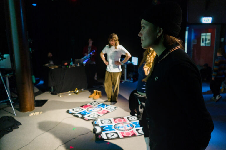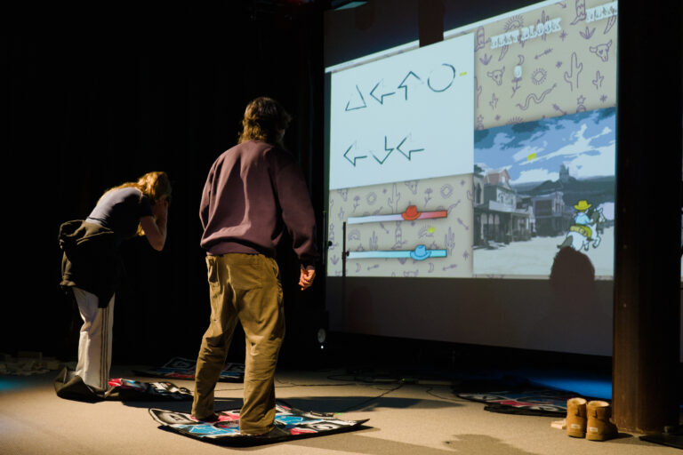 Bei Horsegame steuern zwei Spieler:innen über Tanzmatten ihre Spielfiguren in einem digitalen Wettrennen, wobei ihre Schritte Klänge erzeugen und somit rhythmische Begleitung und melodische Struktur ausbilden. Publikumseingriffe erfolgen durch das Platzieren von Hindernissen, die spezifische Tanzsequenzen zum Lösen erfordern. Zusätzlich kann durch kollektive Investition ein beschleunigter Spielmodus aktiviert werden, wodurch insbesondere Tempo und Unterbrechung als musikalische Gestaltungsmittel genutzt werden.